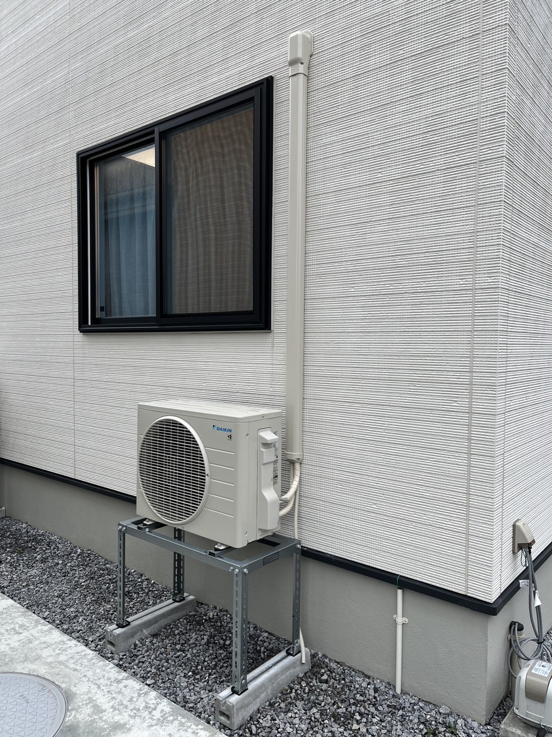 すごく綺麗に施工できました。今回は持ち込みのエアコンでしたが、エアコン本体もお得にご用意機可能です。機種選びから施工まで一貫して対応することで、本体の保証も可能になるので安心してご利用いただけます。お持ち込みでの取り付けも承っておりますが、本体の保証はできないため、可能であれば弊社でのご用意した機器での施行をお勧めしております。