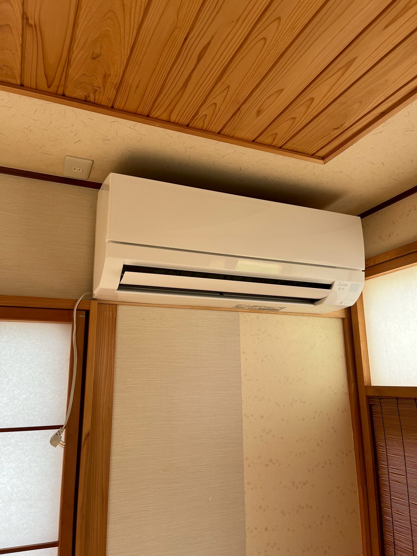 今年の夏は特に暑さが厳しく、夜になっても気温が下がらず寝苦しい日が続いていたとのことと。来年もまた暑くなることが見込まれるので、お身体の負担を少しでも軽くしていただきたく、今回はご相談を受けて、新しいエアコンを特別価格でご用意し、設置させていただきました。