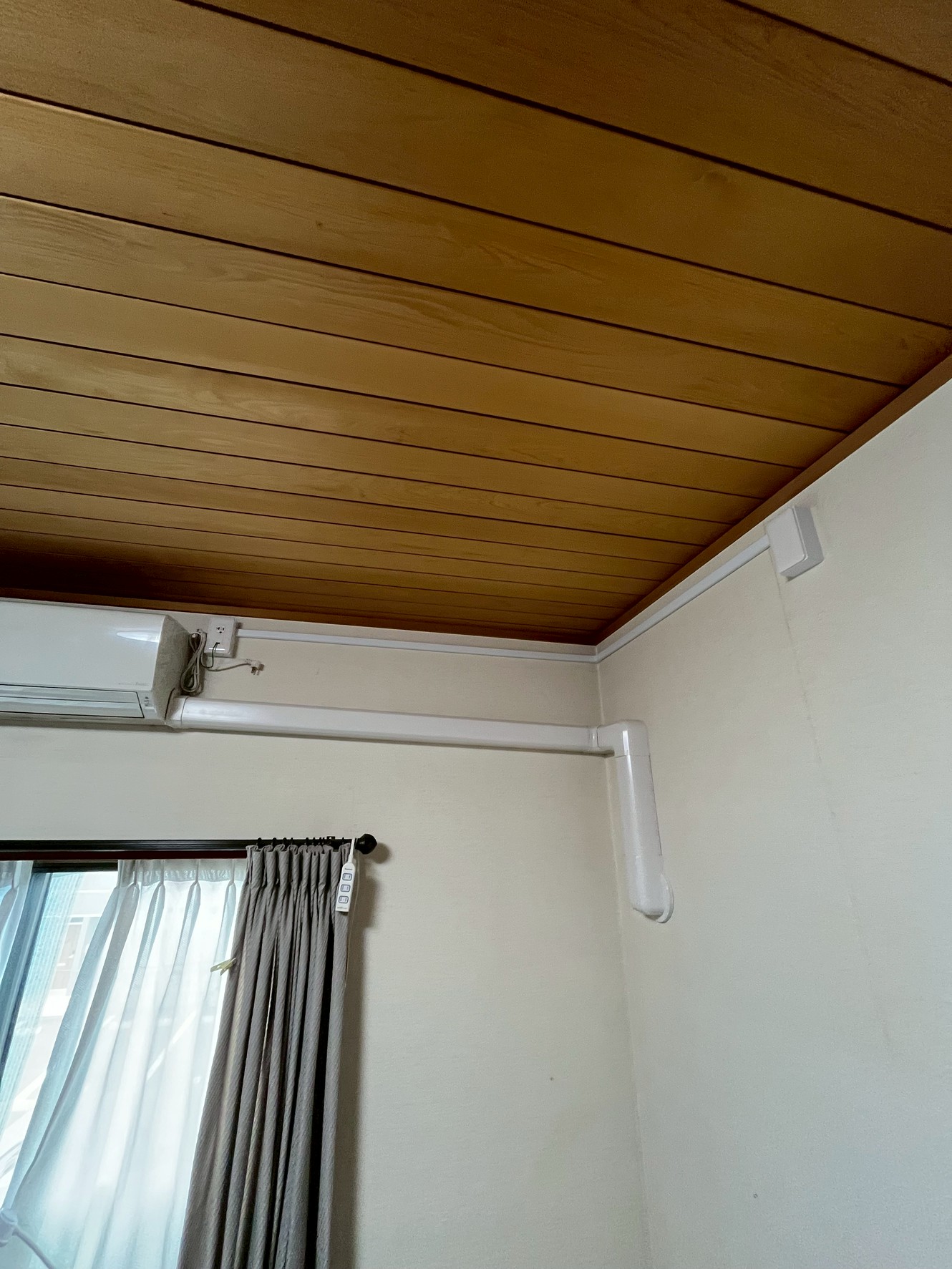 また、エアコンの設置に関しては、室外機を置ける場所が限られていたため、室内を通して配管する形になりました。その分、多少費用がかかってしまいましたが、仕上がりもすっきりと綺麗に納まり、お客様にもご満足いただけたようで安心しました。