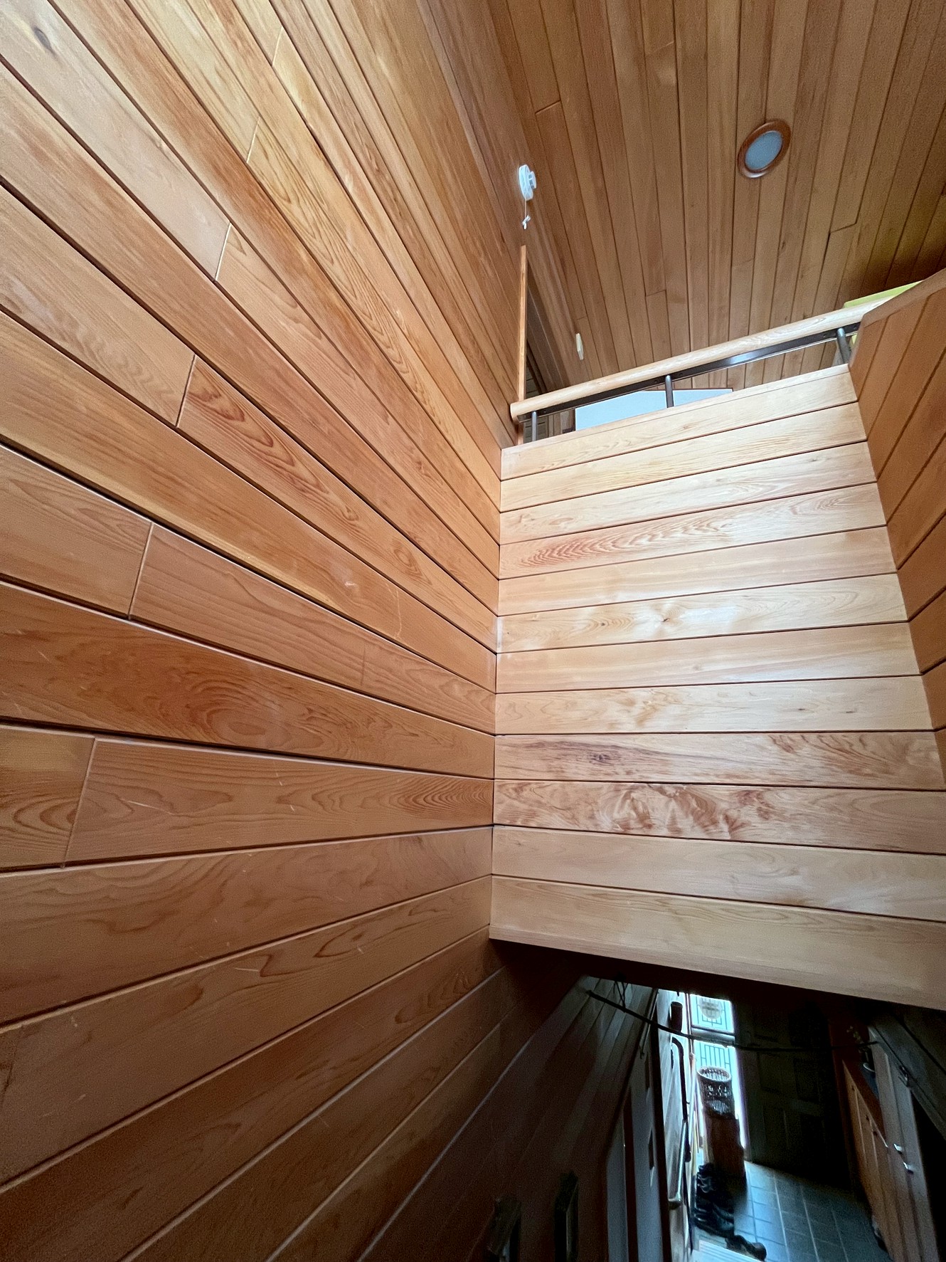 電源工事では、コンセントの設置場所まで距離があり、壁の中に配線を隠すのが難しい状況でした。そこで、見た目にも配慮して、露出配線には配線カバーを取り付ける方法を選びました。廊下の壁が板張りだったので、できるだけ壁の色に馴染むようなカバーを選んで施工しています。「配線が目立たなくてよかった」とお客様に喜んでいただけてホッとしました。